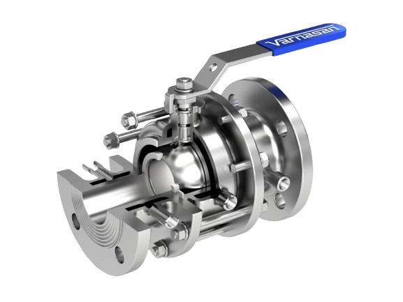 Flanged jacketed stainless steel ball valve made from AISI 304/316 for corrosion-resistant flow control and thermal management in industrial pipelines.
