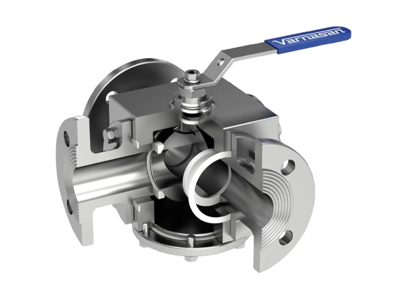 The T-type three-way port design allows flexible flow direction between three ports, reducing the need for multiple valves and simplifying system layouts. Its flanged end connections ensure secure installation and leak-free operation in medium- to high-pressure applications. This valve is ideal for use in chemical processing, food and beverage, pharmaceutical, water treatment, and general industrial systems where reliability and durability are essential.