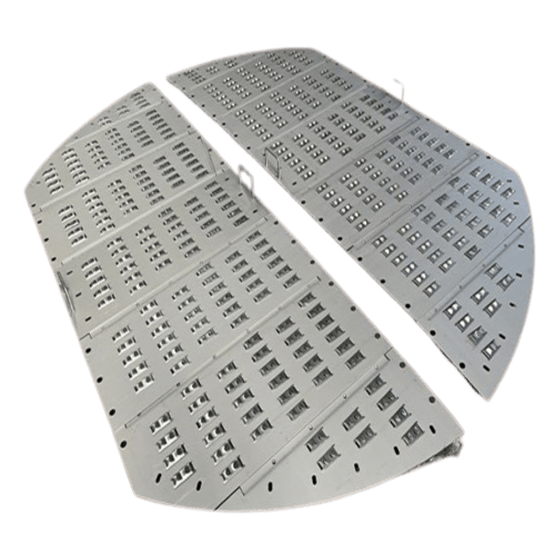 Available in both round and rectangular designs, Valor Floating Valve Trays can be customized to match specific tower diameters, vapor loads, and pressure conditions. Round trays are ideal for standard cylindrical towers, while rectangular trays suit pilot columns, test units, and non-standard designs. Each tray is fabricated in-house using CNC punching, laser cutting, and automated forming to ensure tight tolerances, uniform valve movement, and structural precision.