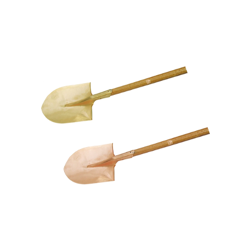This shovel is made from Beryllium Copper (Be-Cu) and Aluminum Bronze (Al-Br), both known for their non-sparking, non-magnetic, and corrosion-resistant properties. These materials are chosen for applications where sparks must be avoided, especially in explosive or flammable work environments. They also provide high strength and durability for tough digging tasks.