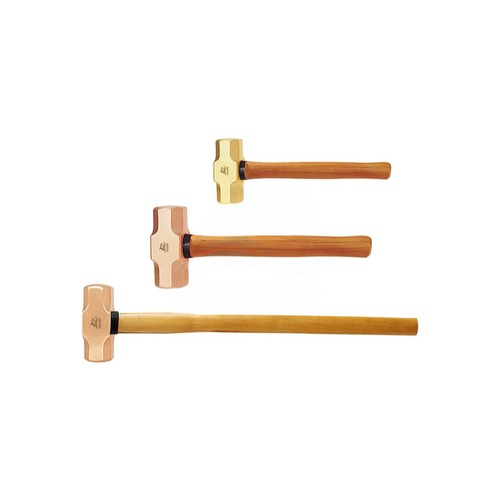 This sledge hammer is manufactured from high-quality non-sparking materials, specifically Beryllium Copper and Aluminum Bronze. These materials are well-known for their ability to prevent spark generation upon impact, making them essential tools in industries such as oil and gas, chemical processing, and mining. The combination of strength and non-sparking safety is what sets this product apart from conventional steel hammers.